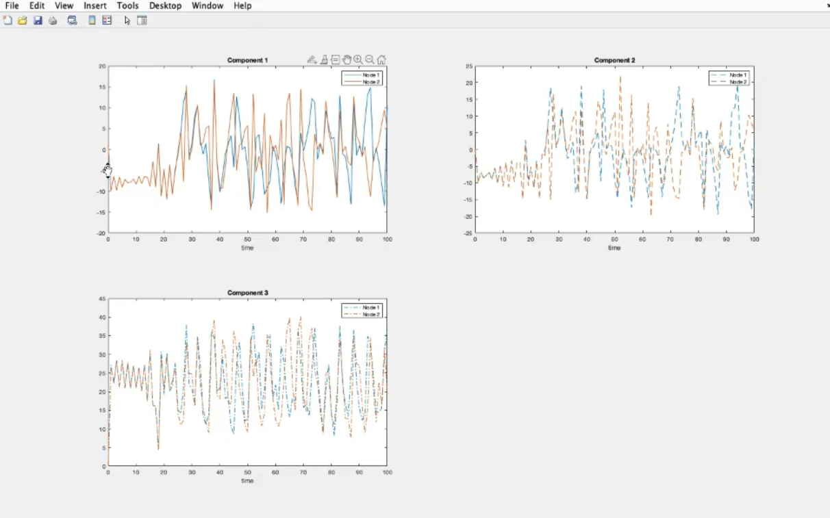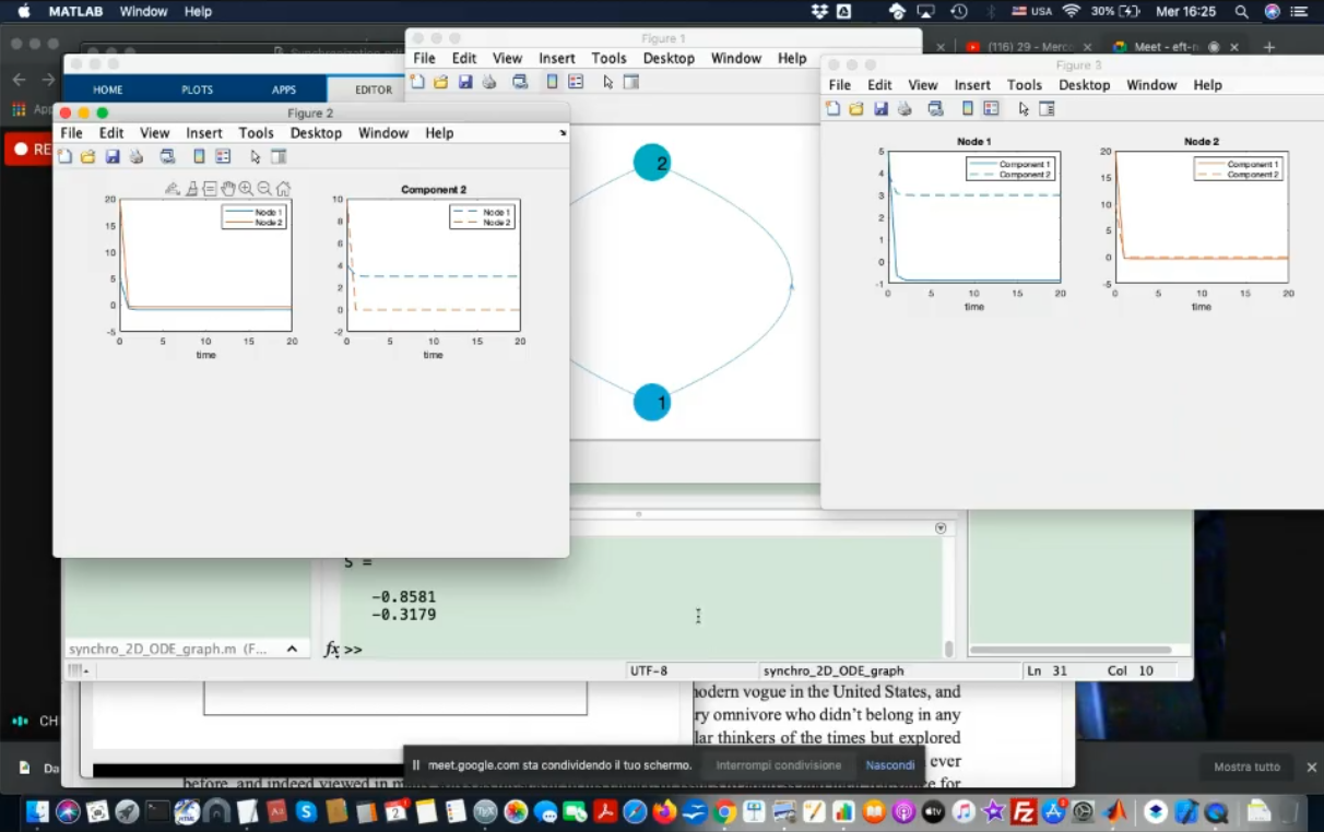 - Now immagine that the simple 2-node graph seen previusly describes two Lorenz systems, connected.