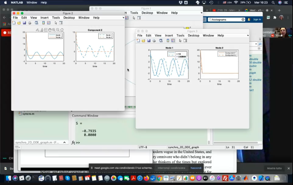 - I rewrite here the equations:{x1=x3x3=−ω12x1+k(x2−x1){x2=x4x4=−ω22x2+k(x1−x2)