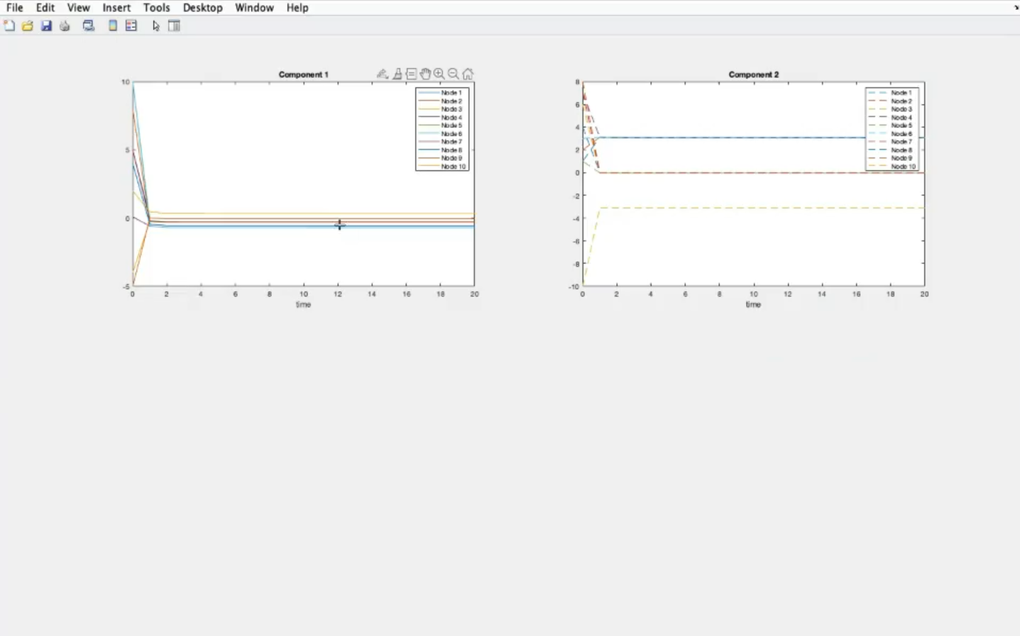 - 2 Identical stable systems, with different inital conditions, and NO coupling.