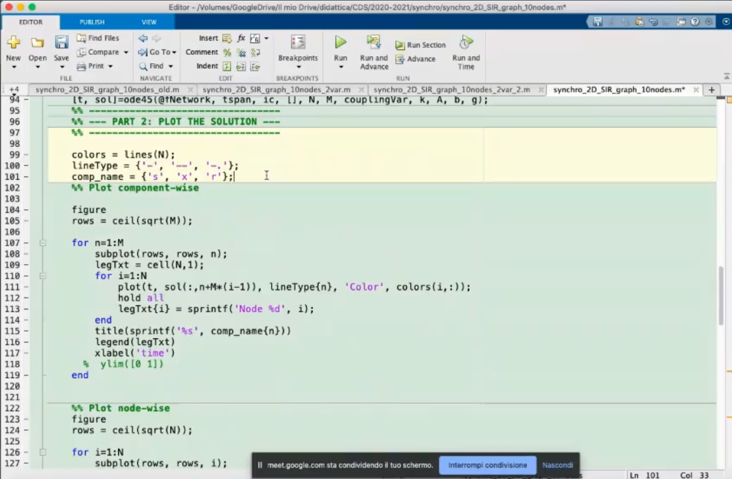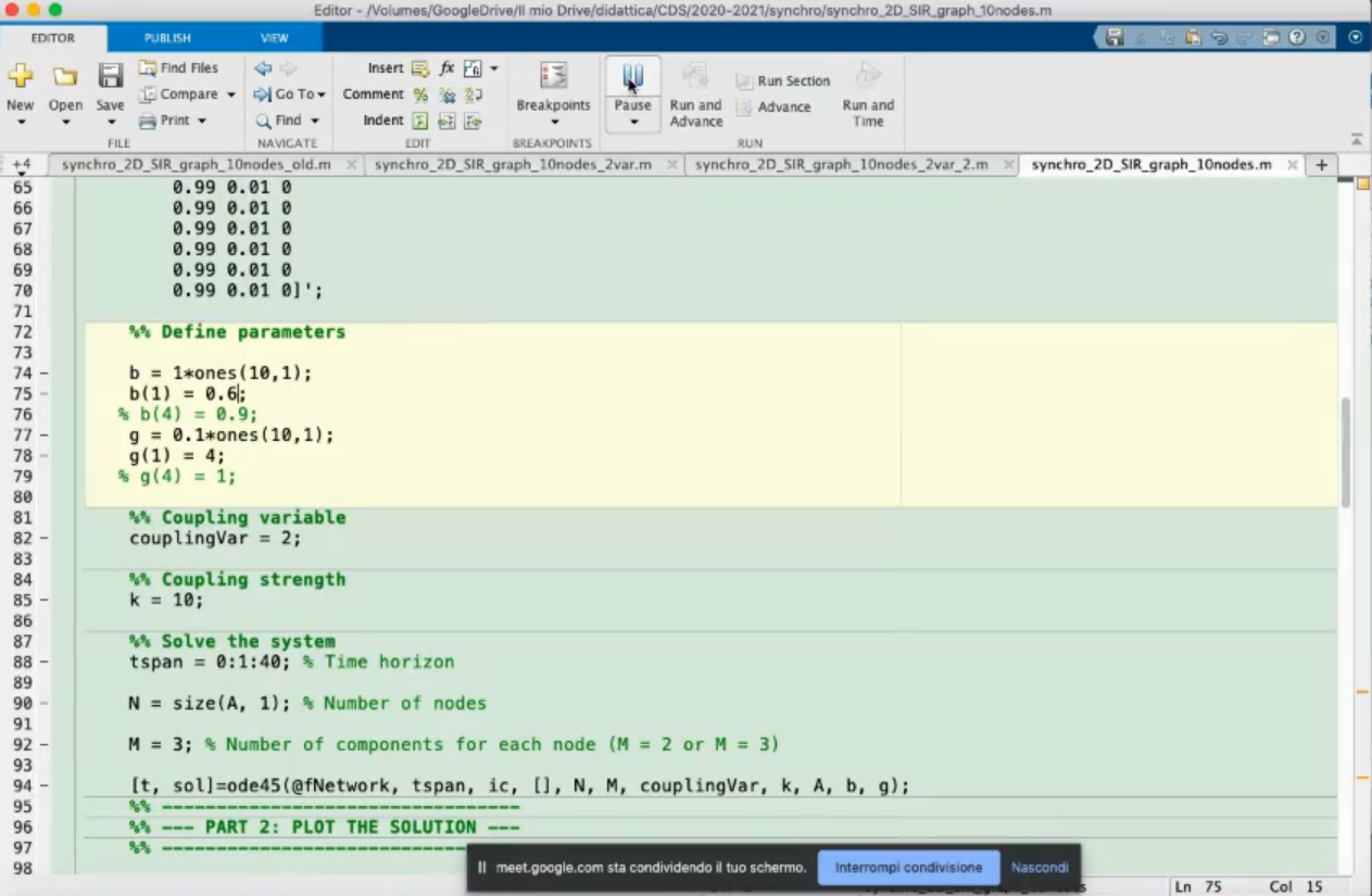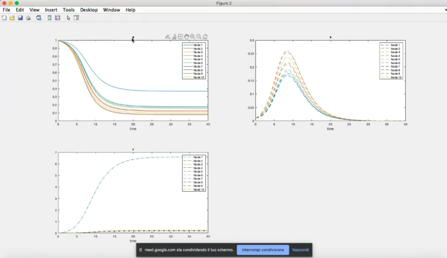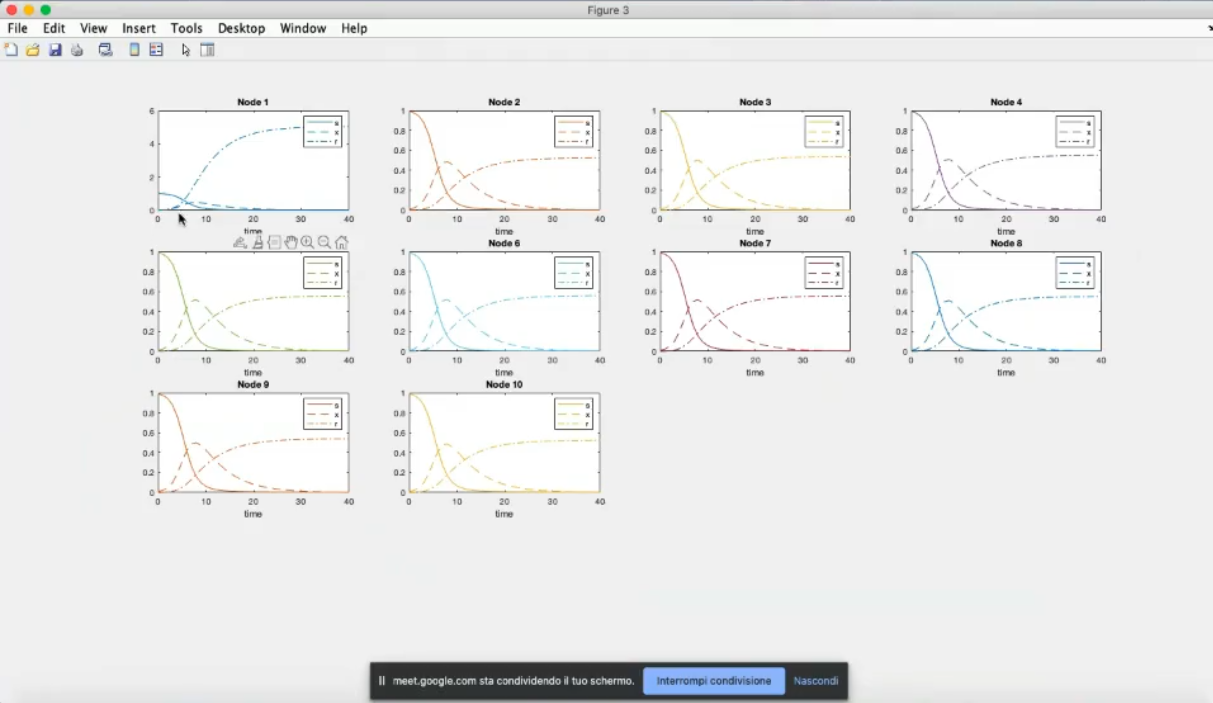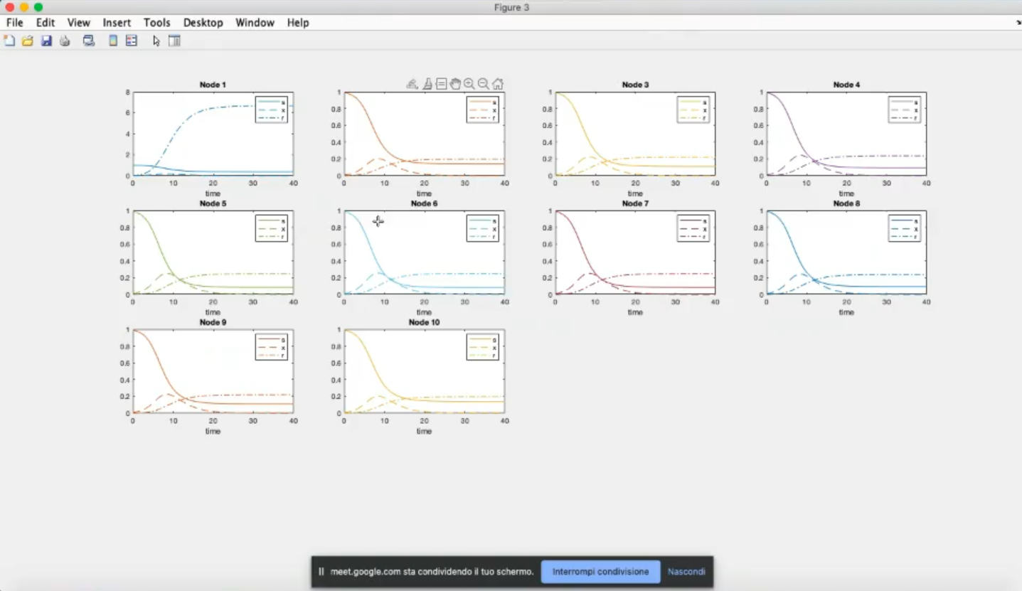 - Due to the coupling term (k=10) the other nodes have a decrease in infected people.