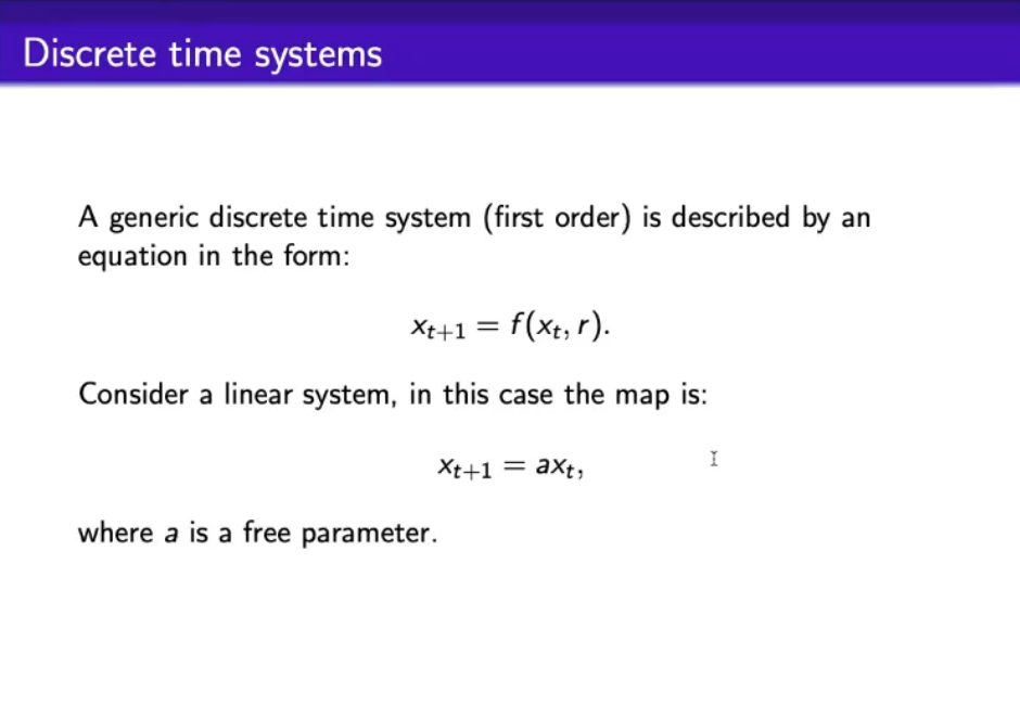 - A discrete time system is also called a map.