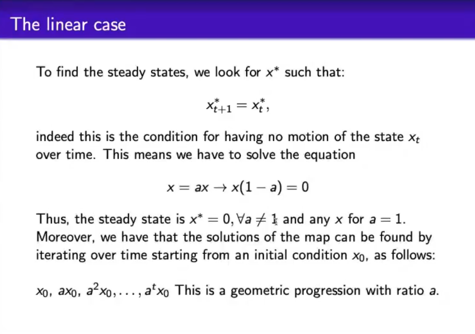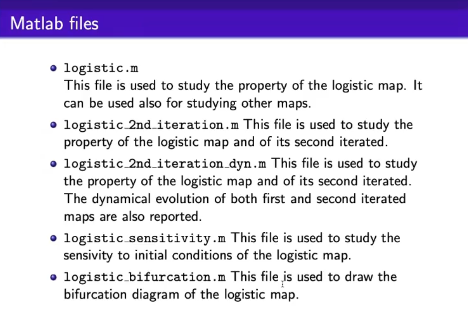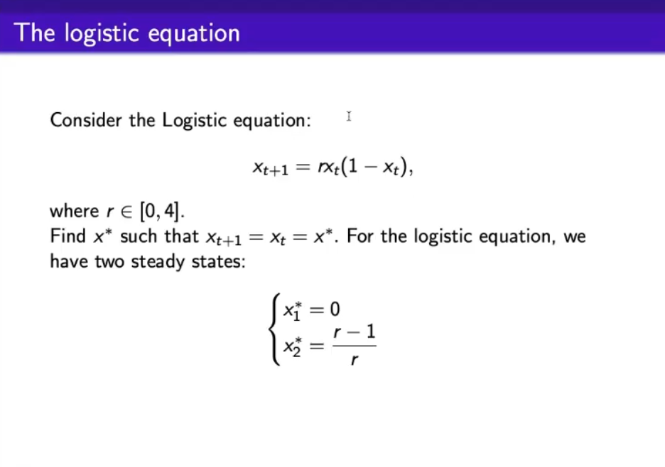 - We will see a logistic map, that shows deterministic chaos, and it is a monodimensional system.