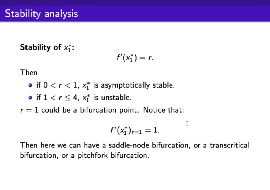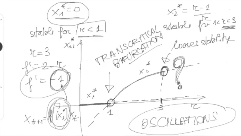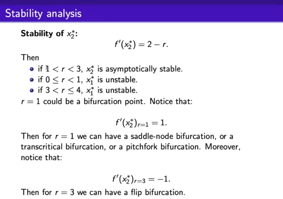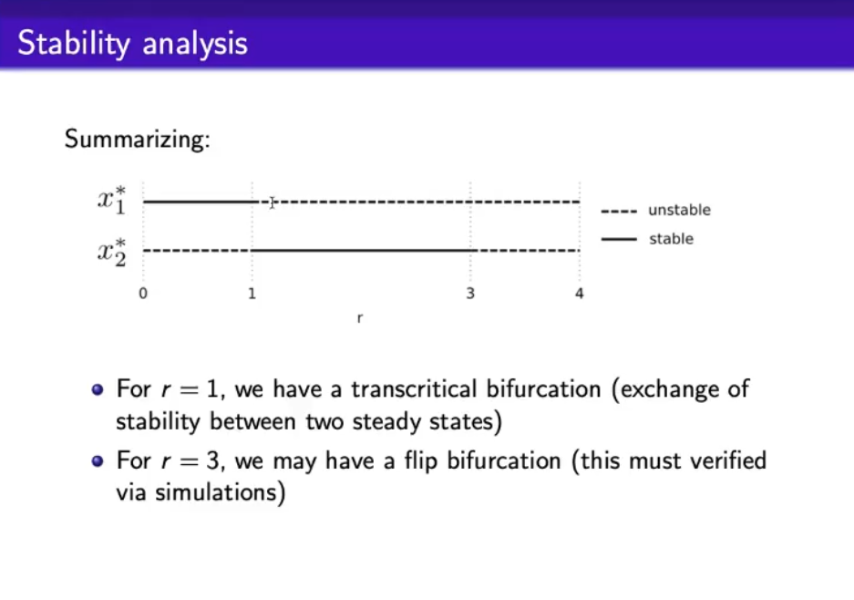 - In discrete case we can have a new type of bifurcation: the “flip bifurcation”.