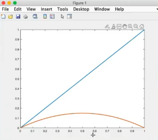 - If we represent like before the line (which is the bisector), and in red the line representing the function: , as we can see, for , the two lines coincide.