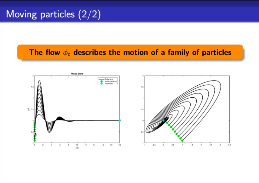 If we represent the “motion of a family of particles” (the flow ):