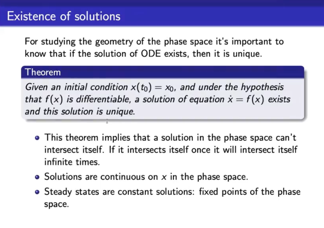 - So when desining the geometry of the phase space, then we will have that a solution in the phase space CANNOT intersect itself, still under the hypotesis that is a differentiable function.