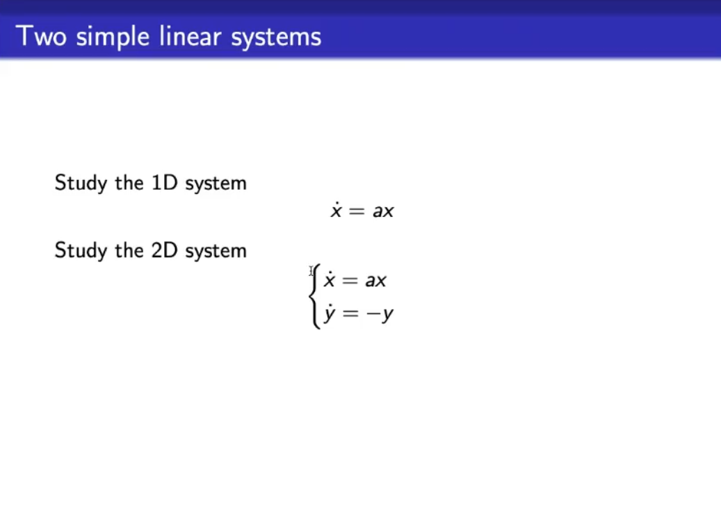 - As a sneak-peak: we’ll need imaginary eigenvalues in a multidimensional system to have oscillations.