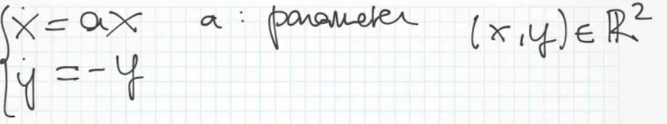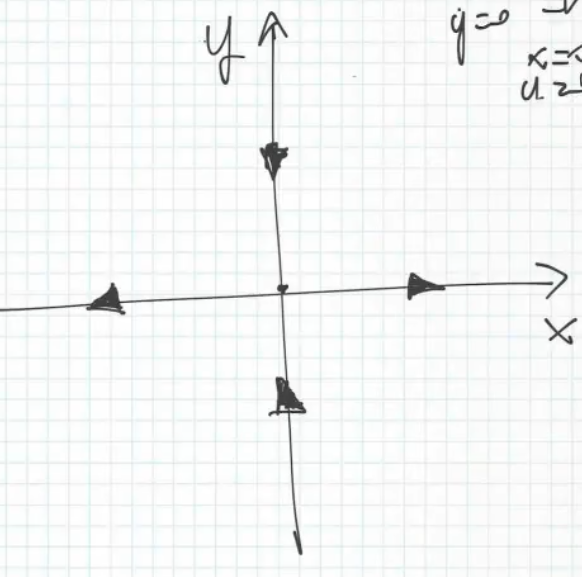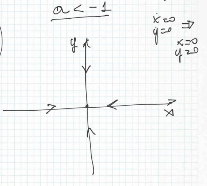 As a sneak-peak for the future, in this system we can define the eigenvalues as: and , the sign of the eigenvalues is strictly correleted to the stability of the steady states.