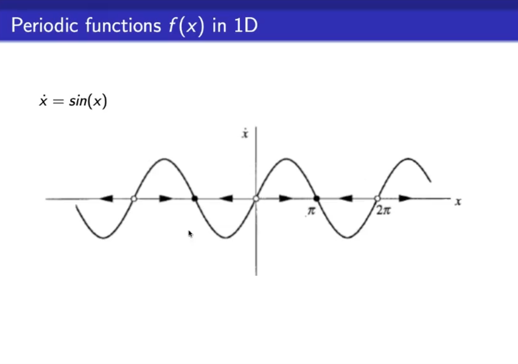 - This function is periodic over , however monodimensional system cannot present periodicity over , nor oscillations.