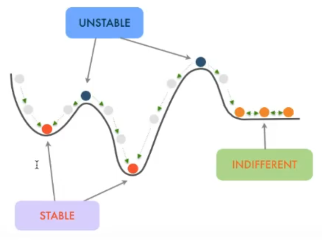 Steady states can be stable, unstable or indifferent (marginally stable):
