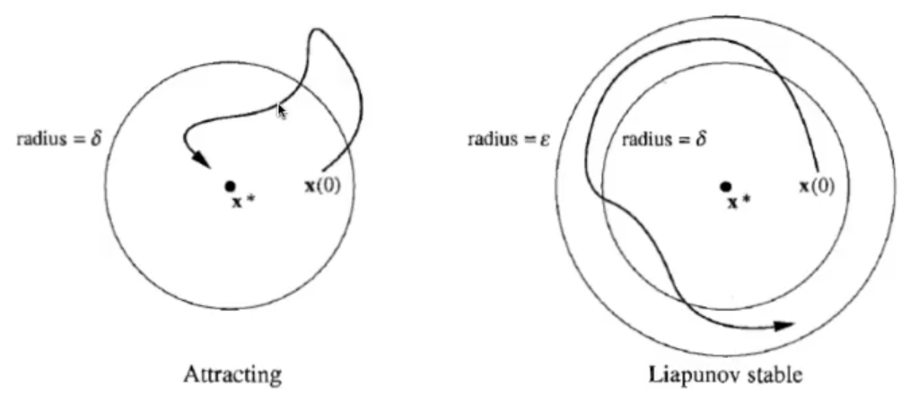 Here’s a figure to understand the difference between attracting and lyapunov stable steady states: