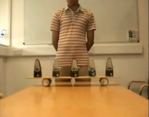 - Generally we can say that to create a syncronization between multimple systems, we need to create a connection between them, in this example the connection is the plank suspended on two cans of soda.