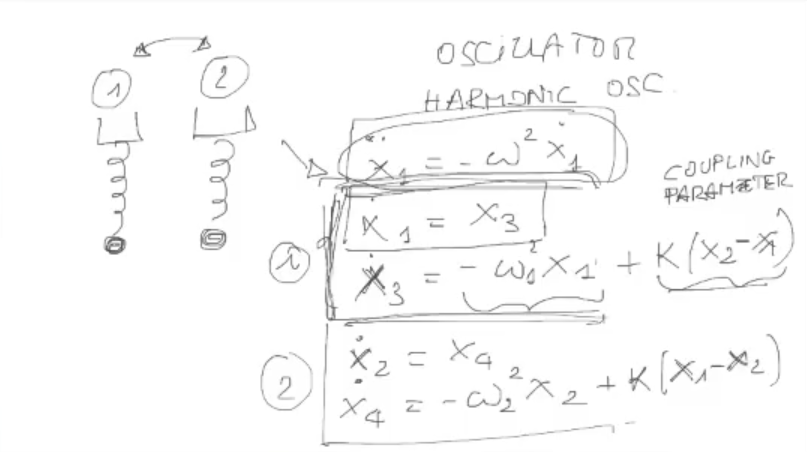 - Leaving the first equaiton untuched (since it serves only to define in terms of ODE equations), we can add a term called “coupling parameter” that depends on a variable of the second system.