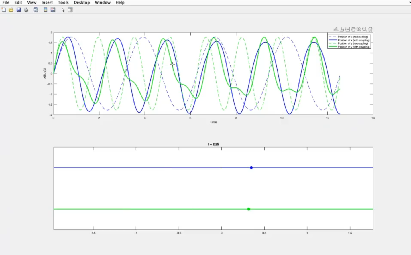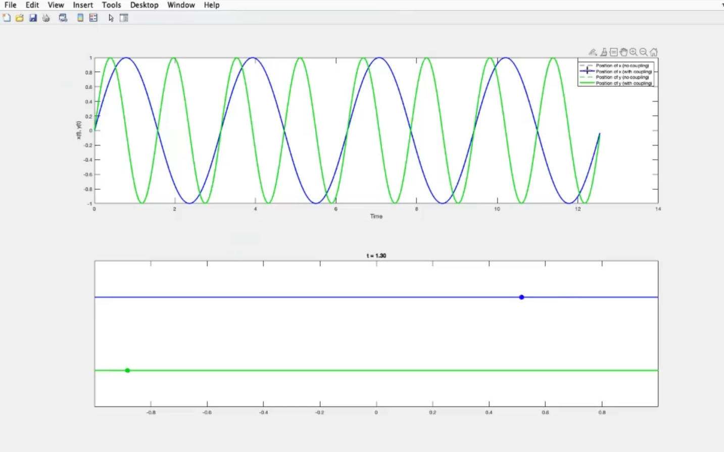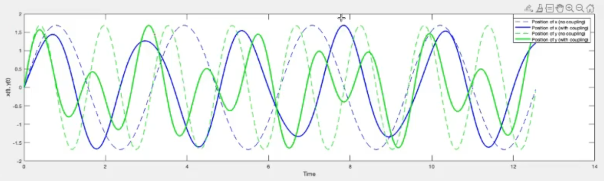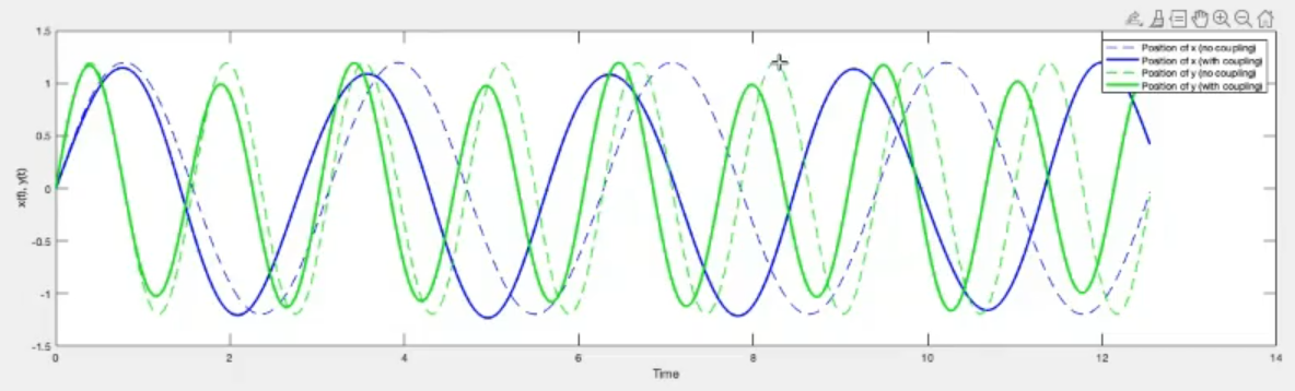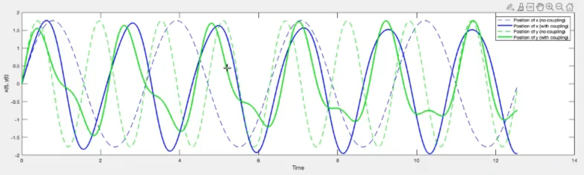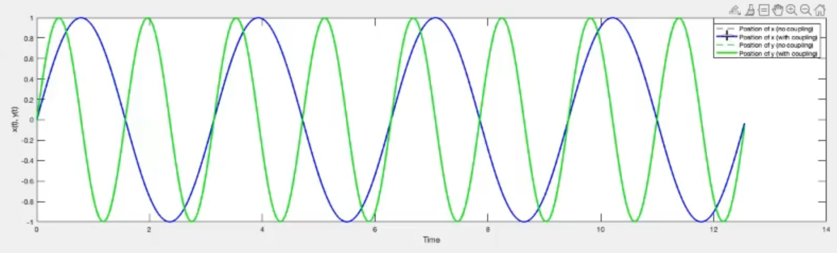 Let’s see how the graph of these two systems change when we increase the or “coupling parameter”.