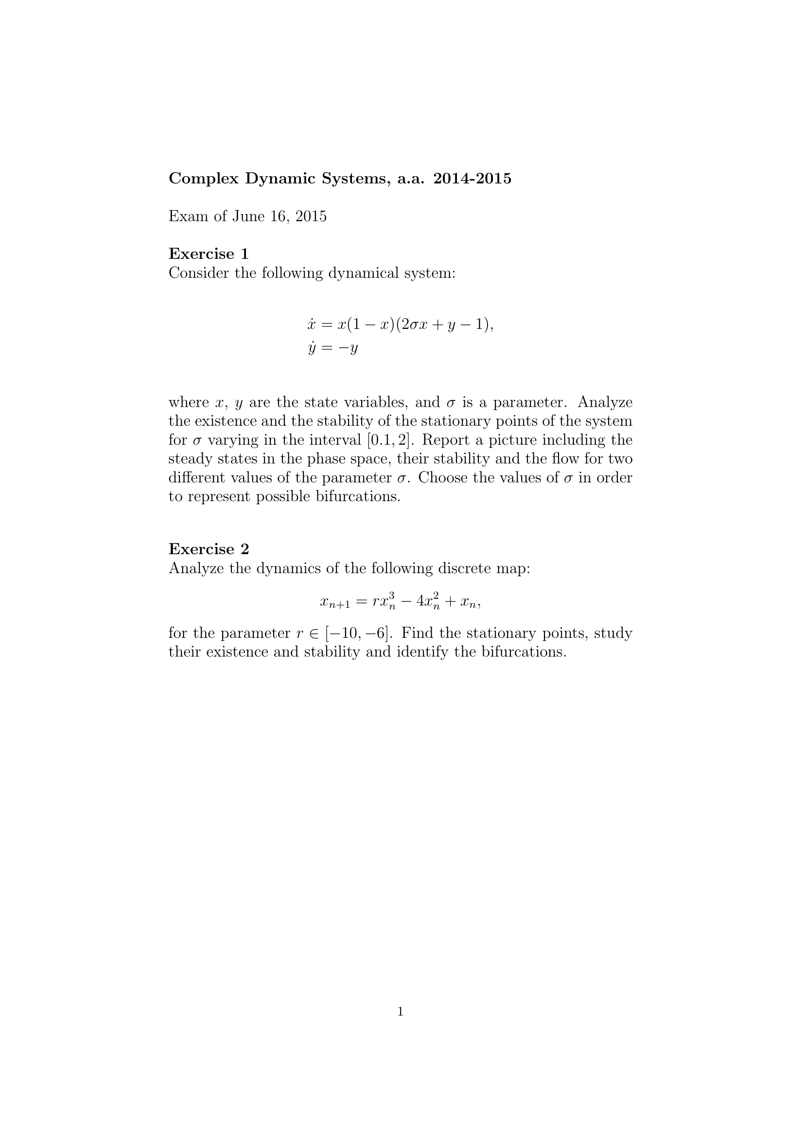 Contents: #ComplexDynamicSystems #DynamicalSystemWithParameters #SteadyStates #Bifurcations #DiscreteMap
