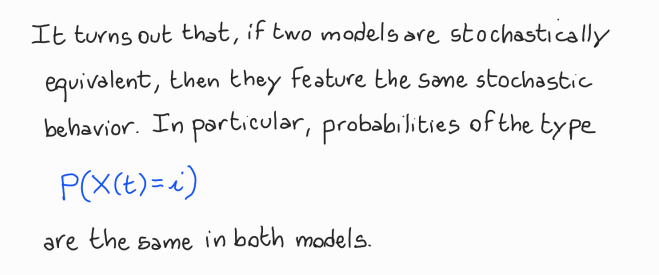 Given the Definition of ‘Stochastic Equivalence of Discrete-Event Models’, we have that: