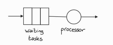 Here costumers are tasks to be executed in a process (the “server”).