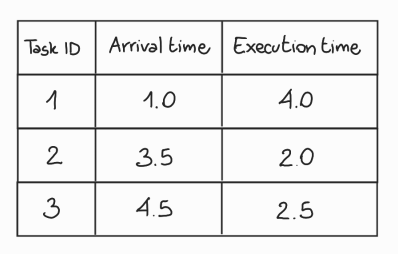 Characteristics of the tasks follows this table: