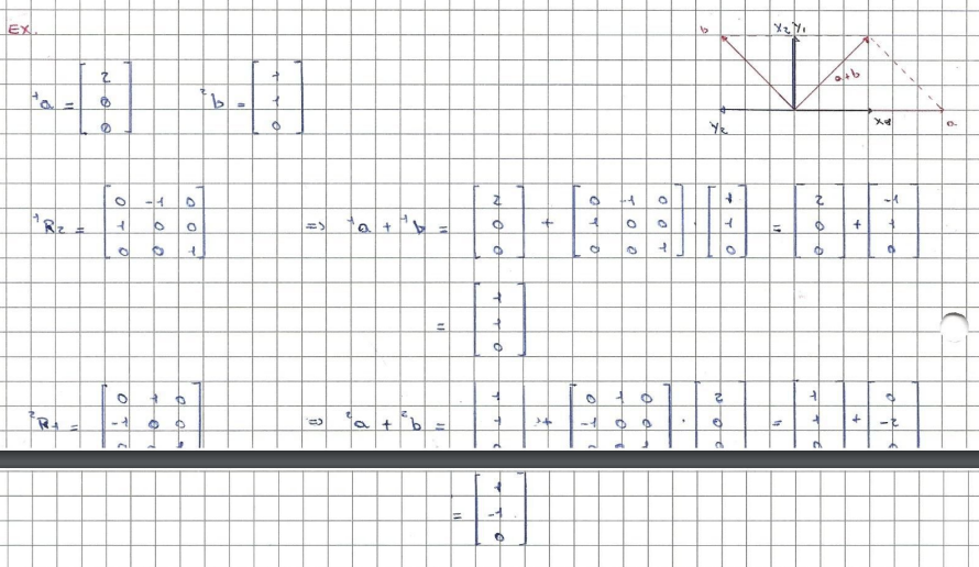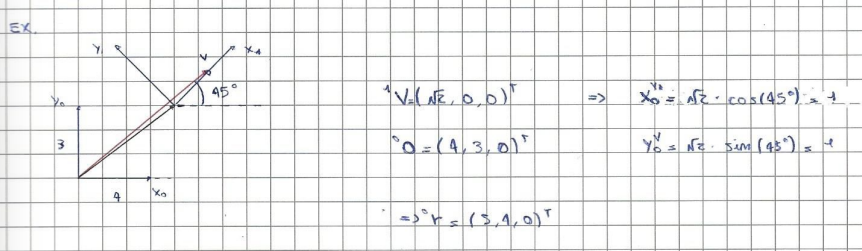 Per trasporre il vettore in un altro sistema di riferimento si opera la somma tra il vettore, che dal secondo punta al corrente sistema nell’origine, e viene rapprensetato poi secondo il nuovo sistema.