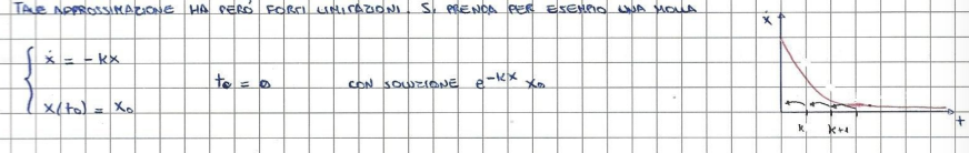 Per determinare si utilizza il metodo di Eulero, il quale consiste nell’approssimare alla sua espansione di Taylor al primo ordine:N.B.: Se si conoscessro tutte le derivate di in un punto si potrebbe prevederla in un futuro qualsiasi. Quindi possiamo dire che: Tale approssimazione ha però forti limitazioni, si prenda ad esempio una molla:( : coefficiente elastico)