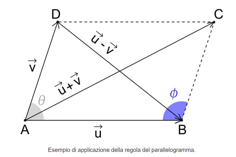 ==La Regola del Parallelogramma è un principio geometrico utilizzato per sommare due vettori==. Secondo questa regola, la somma di due vettori può essere rappresentata graficamente costruendo un parallelogramma. I due vettori si dispongono con la stessa origine, e la somma dei vettori è data dalla diagonale del parallelogramma che parte dall'origine comune.