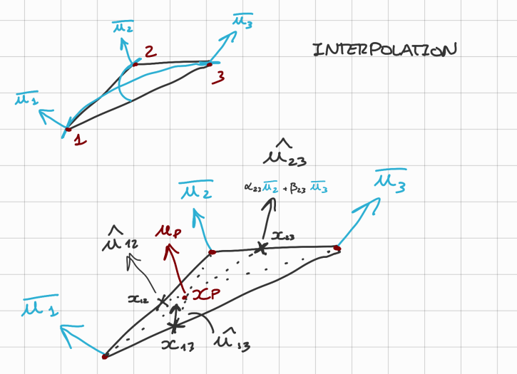 → The interpolated normal of can be calculated as: