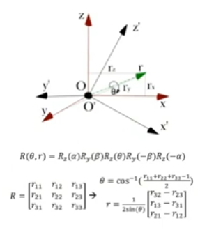 - is the angle of rotation along the axis (in the figure this axis/vector it’s represented by the vector but i wanted to avoid confusion between this axis of rotation and the elements of the rotation matrix : , so i called it ).