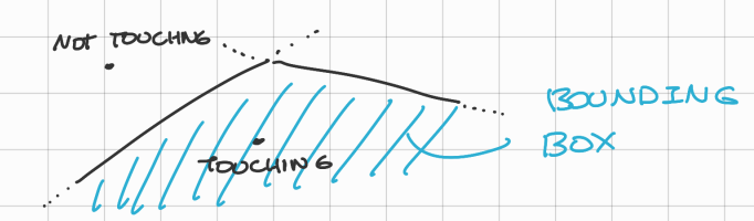 Nel disegno ho rappresentato due linee, è sbagliato, in quantoin uno spazio 3D rappresenta un piano e non una linea, per ottenere una linea in uno spazio 3D è necessario intersecare due piani.We can define being in an object if we are inside the bounding box, then we can say that we are “touching” that object.