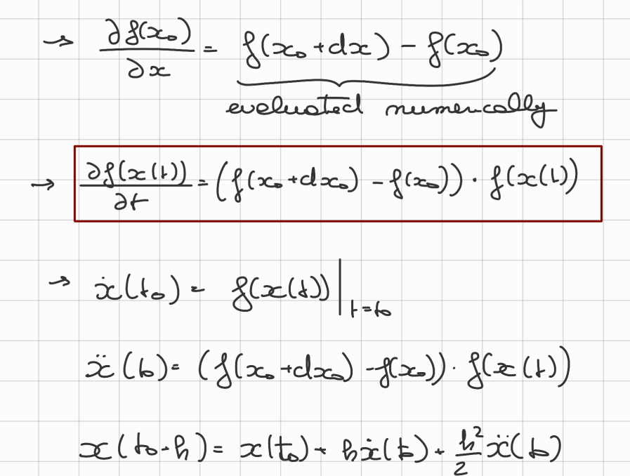 ⇒ So we want the result of x¨(t0) using only x(t0) and f(x(t),t), so we can: