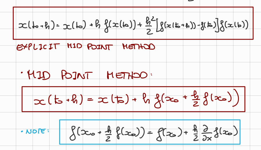 Resulting in: Mid Point Method: x(t0+h)=x(t0)+hf(x0+2hf(x0))