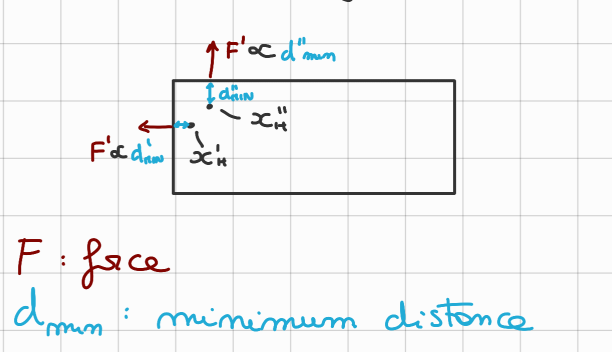 - Notice how for a small displacement of xh the direction of the Force changes drastically.