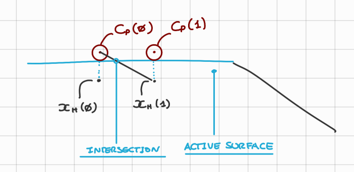 - Then given the haptic point @ tk=1 → xh(1) we find which triangle in my triangular mesh is “ACTIVE”.