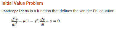 ode = @(t,y) vanderpoldemo(t,y,Mu);