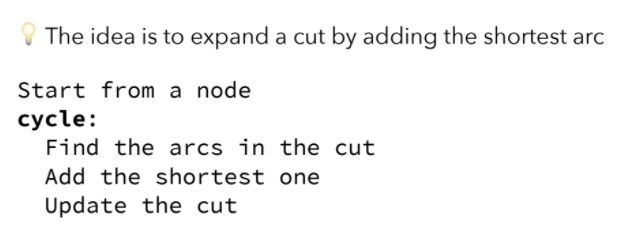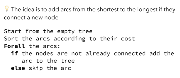 Given a graph its MSP (Minimum Spanning Tree, defined as ) is a connected sub-graph containing no cycles and spanning over all the nodes, also the MSP has the minimum possible total cost of the arcs (each arc has cost )
