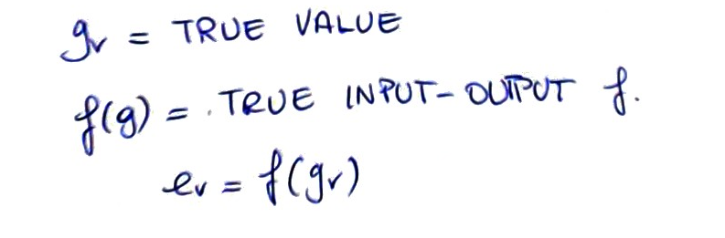 You want to know the quantity (real value), you use a sensor to measure it, the sensor is not perfect (we expect the sensor to have an input-output function instead this specific sensor has a function different from the real one ).