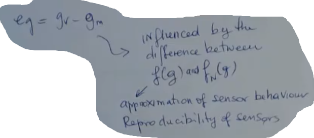So instead of reading the value (expected/real value) you will read an electrical value , then you will βtraduceβ this already wrong value into the measured value using this formula where is the correct function, given by the producer, but not the nominal one so it will introduce another error.