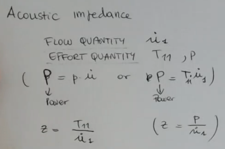 For ultrasonic waves and ultrasonic sensors or actuators we have not defined a lumped parameter system, we have just defined the two quanitites for flow and effort and the generated impedance that binds the two. So for ultrasonic systems we have: