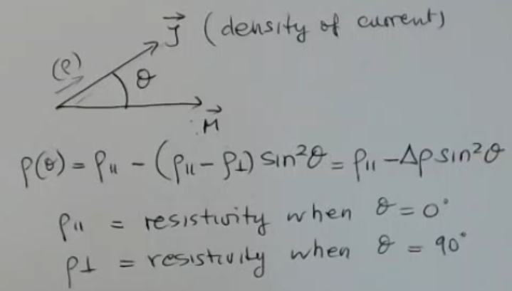 • In general for this material, we find that if I have the certain direction for the vector , and (current density vector) ⇒ the resisitivity , is related to this angle by this equation: