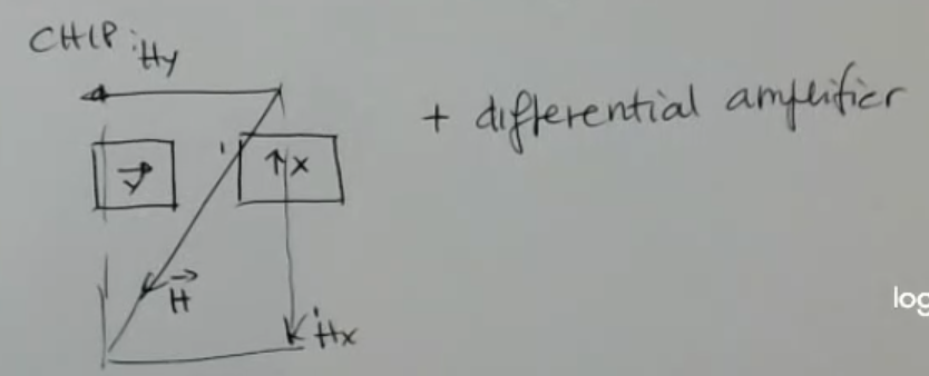 • One which sens along , and the other which is mounted as to sense the component of the field.