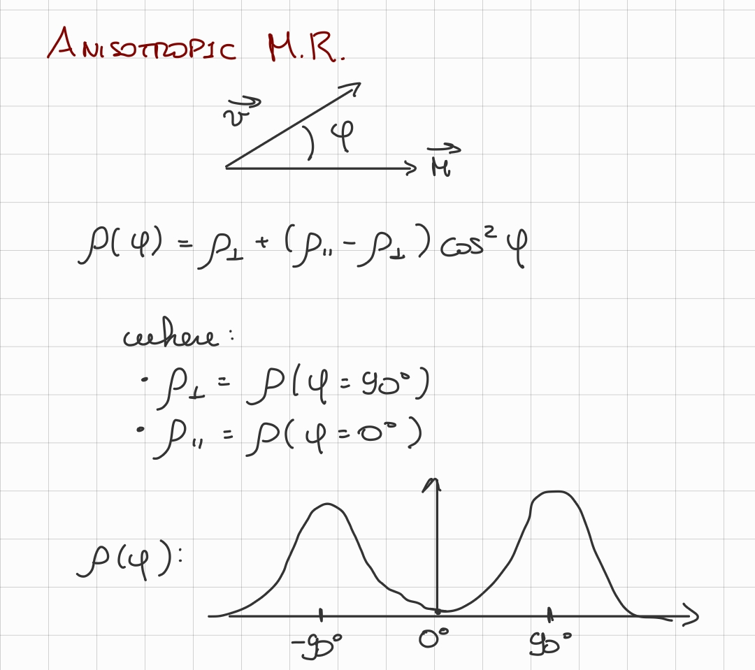 • We find for this kind of materials, that the scattering of electrons, therefore the mobility () and resistivity () depends on the vector , which is the magnetization or the magnetic moment.