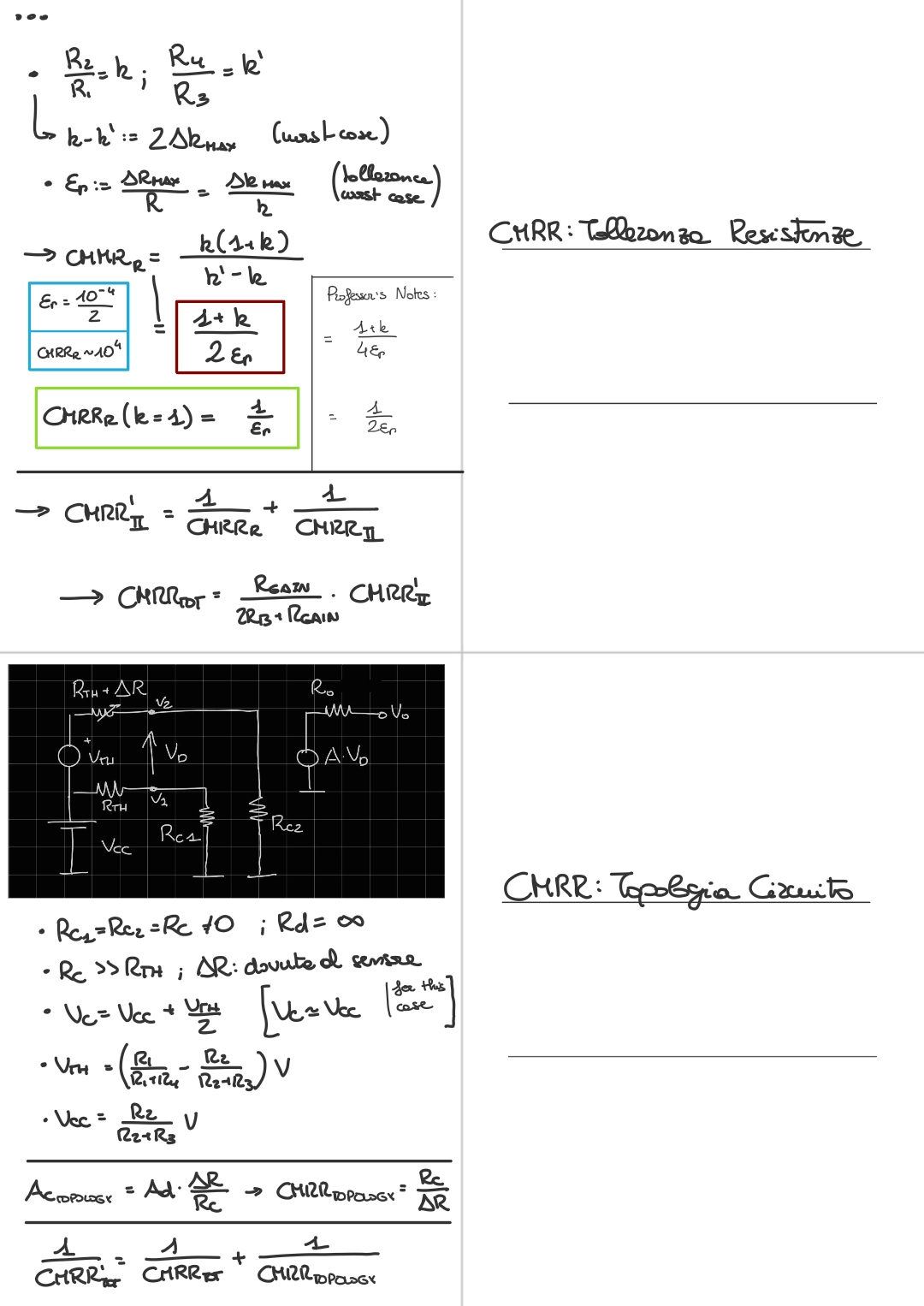 For semplicity we don’t consider no contribution from the operational amplifier common mode rejection ratio, so I’m accounting only for the fact that the resistances () are not precisely what I would like to have from the design, so tolerances of the resistances.
