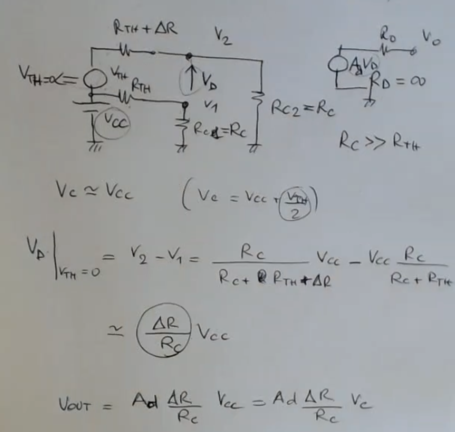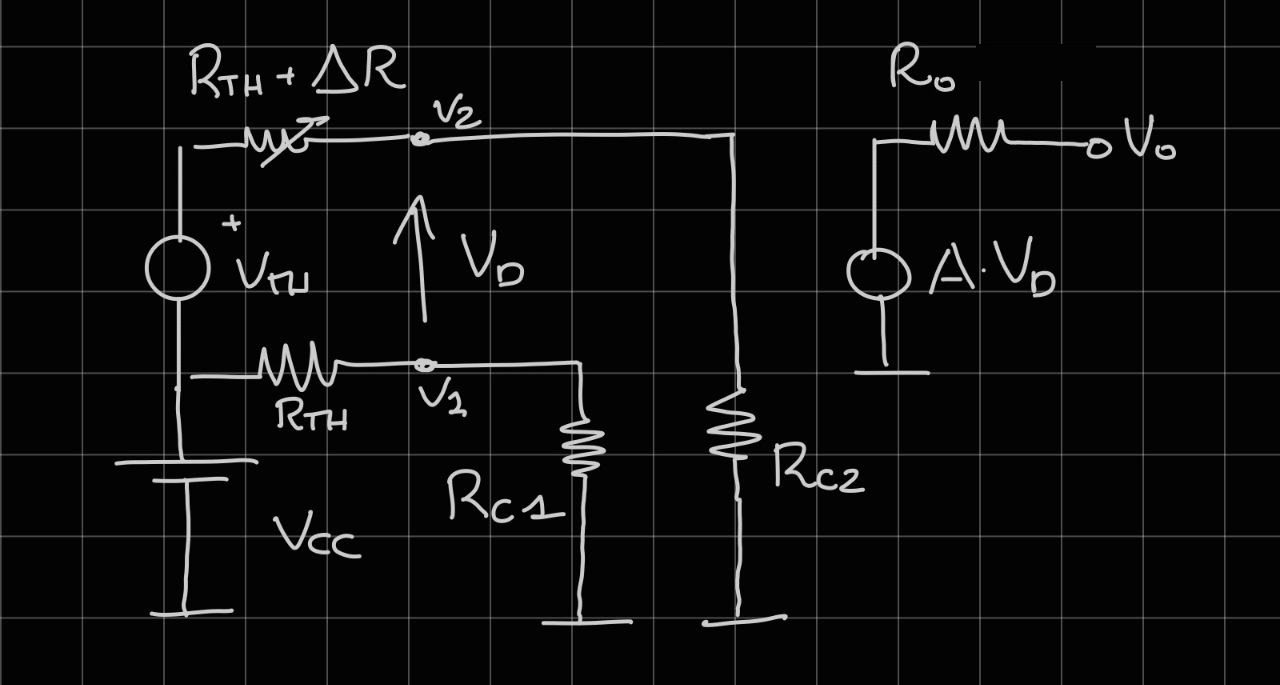 Now let’s consider the “common mode resistances” of an amplifier, so , for semplicity let’s say , and attached to it a resistive bridge, like we have seen before (Thevenim Equivalent):