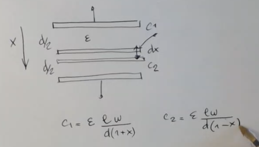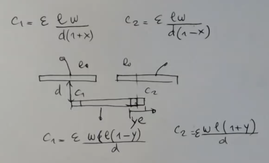 Here are some example on how you can make a Displacement Capacitive Sensors, using two plate, usually one fixed and one that can move, for clarity: