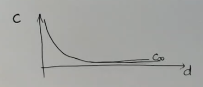 Remeber: ==A circular capacitive proximity sensor with radius , measuring an object away will assume a capacitance of about ==.