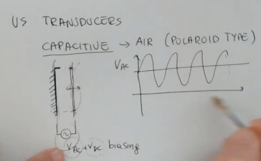 Now a special type of capacitive sensor which are called “CMUT” which is same structure as I show you but in MEMS technology. It allows to use an capacitive US transducer for many different applications, because they succeeded in making a very small structure, and are used for obtaining arrays. So you have many of these capacitive US transducer in a chip, in a single chip, which form an array. We will see how and why the array can be considered very useful.