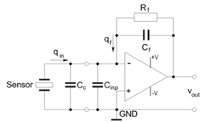 Take for example the output of a piezoelectric ultrasonic transducer, it’s a charge:Described in “piezoelectric actuators” and “ultrasonic tranducers”. This charge is then converted to a voltage. To aid to this conversion, some special kind of amplifiers, called charge amplifiers where developed: ==“A charge amplifier is an electronic current integrator, that produces a voltage output proportional to the integrated value of the input current”==. This is effectevely a measurement of the electrical input charge:Source: Youtube.