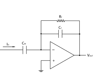 Without the DC gain would be very high so that even the tiny DC input offset current of the operational amplifier would appear highly amplified at the output.- and set the lower frequency limit of the charge amplifier: