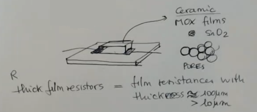 And usually, this film is not properly ceramic, because it’s made up of many different grains, so like powder, which stays together, but it has a lot of pores, so that gas can reach all the film in its whole thickness. - The thick film resistances is usually ceramic, it is inert, so it doesn’t interact with chemical compounds.