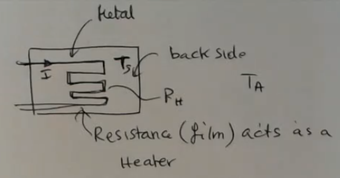 On the backside of the ceramic insulator (inert) substrate, usually you find a thin or thick film metal resistance, which acts as a heater (using the current we provide).