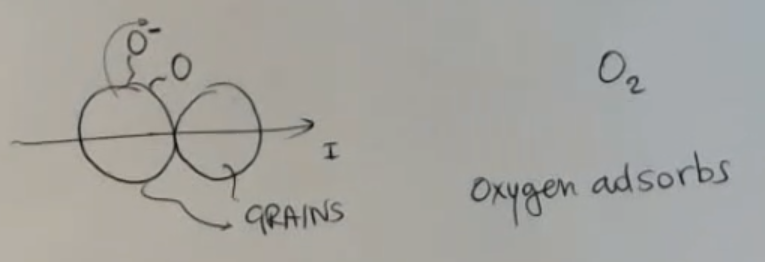- On the surface of these grains here, the gas, which I want to sense, (let’s consider oxygen for instance) is absorbed.